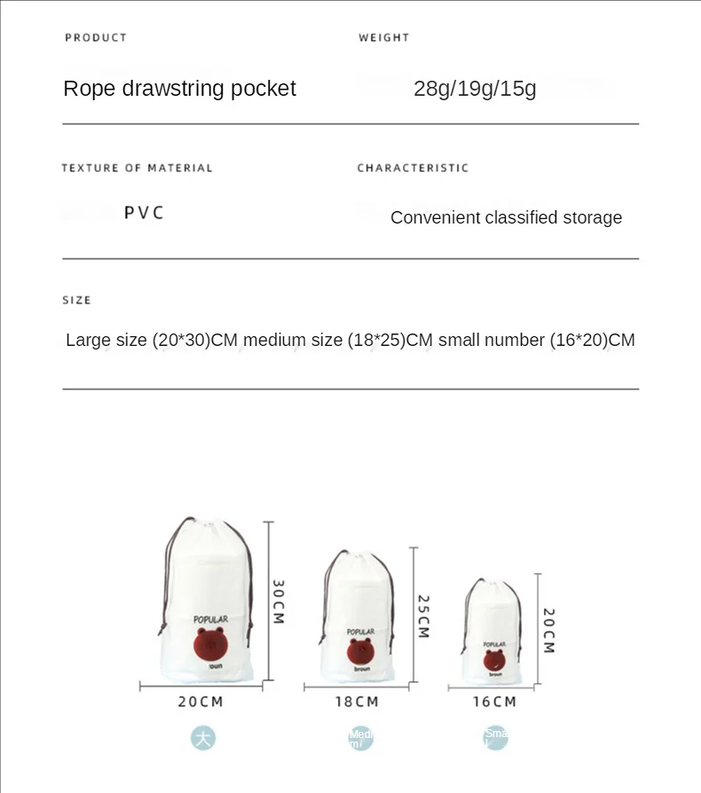 Type:Drawstring Bag Material:EVA Size: S:16*20cm /M:18*25cm /L:20*30cm/Extra large30*35cm