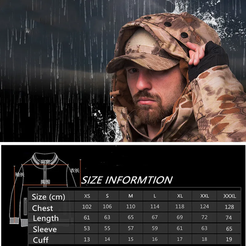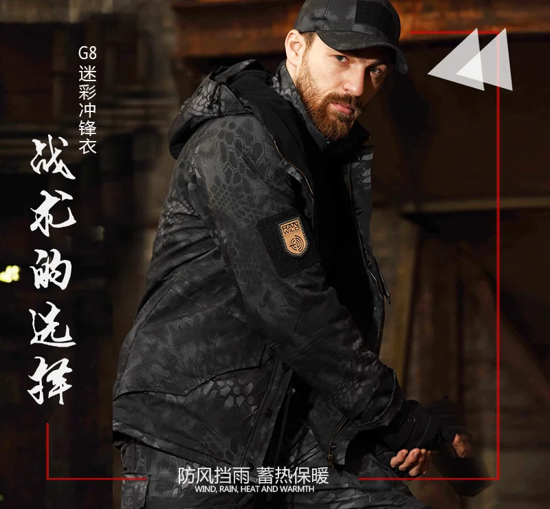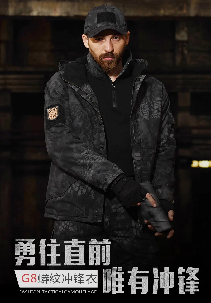Outdoor G8 Python Camouflage Assault Coat Men's Tactical Jacket Training Trekking Hiking Hunting Warm Waterproof Windbreaker