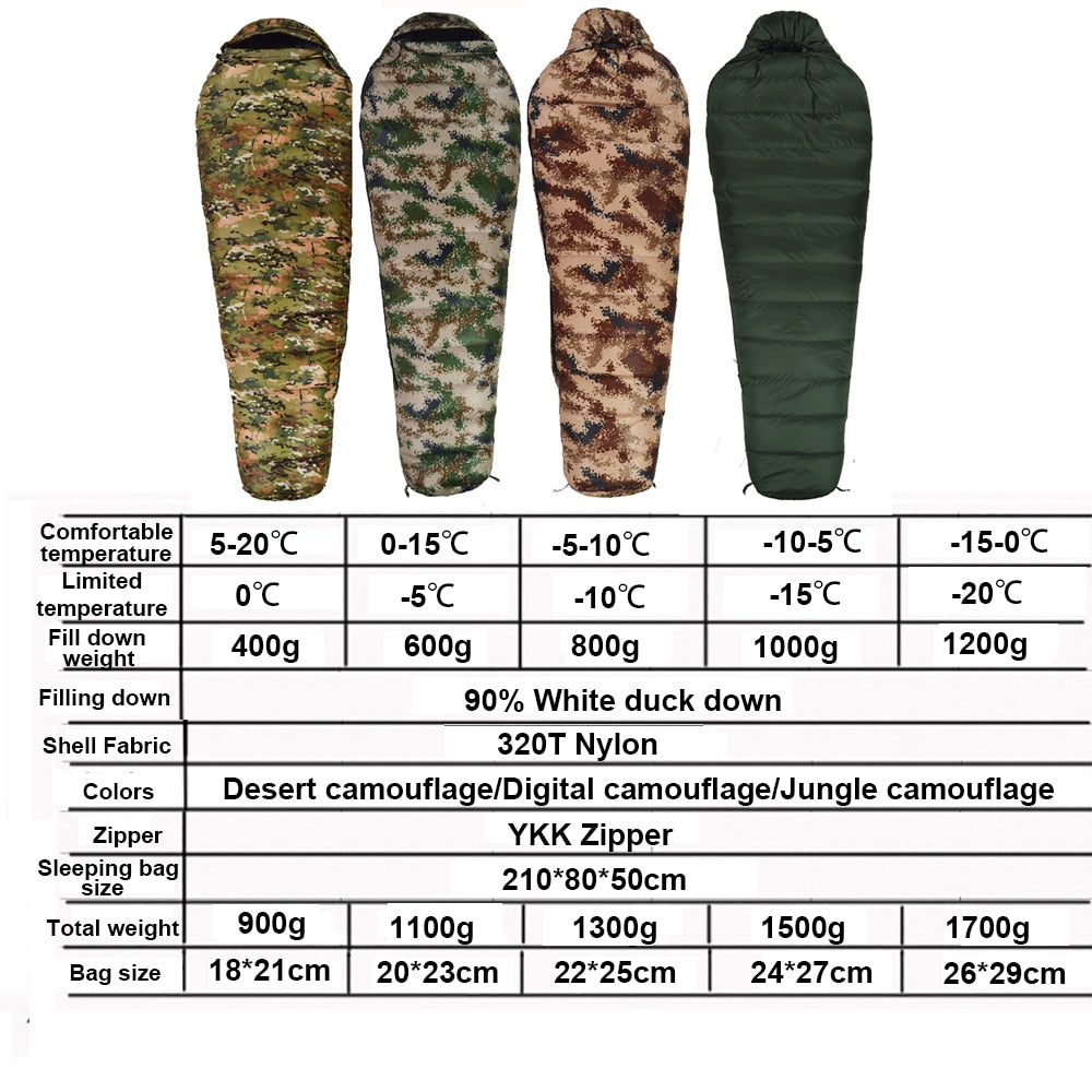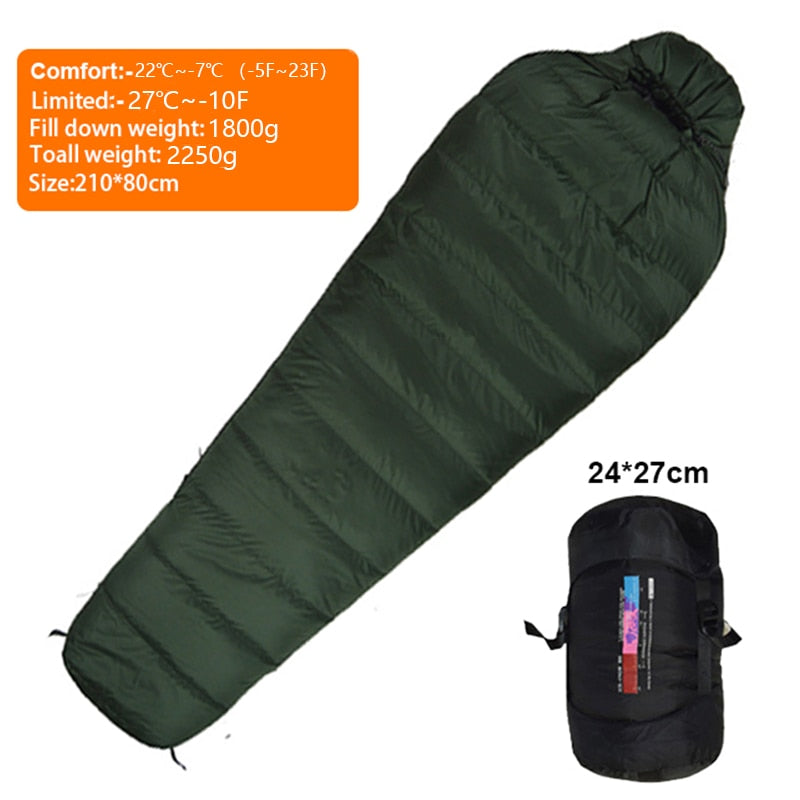 Warm White Duck Down Filled Adult Mummy Style Sleeping Bag