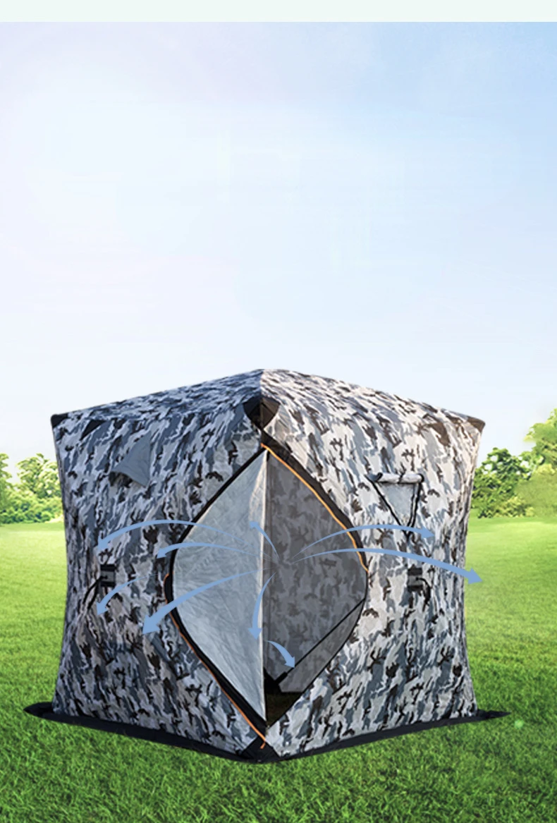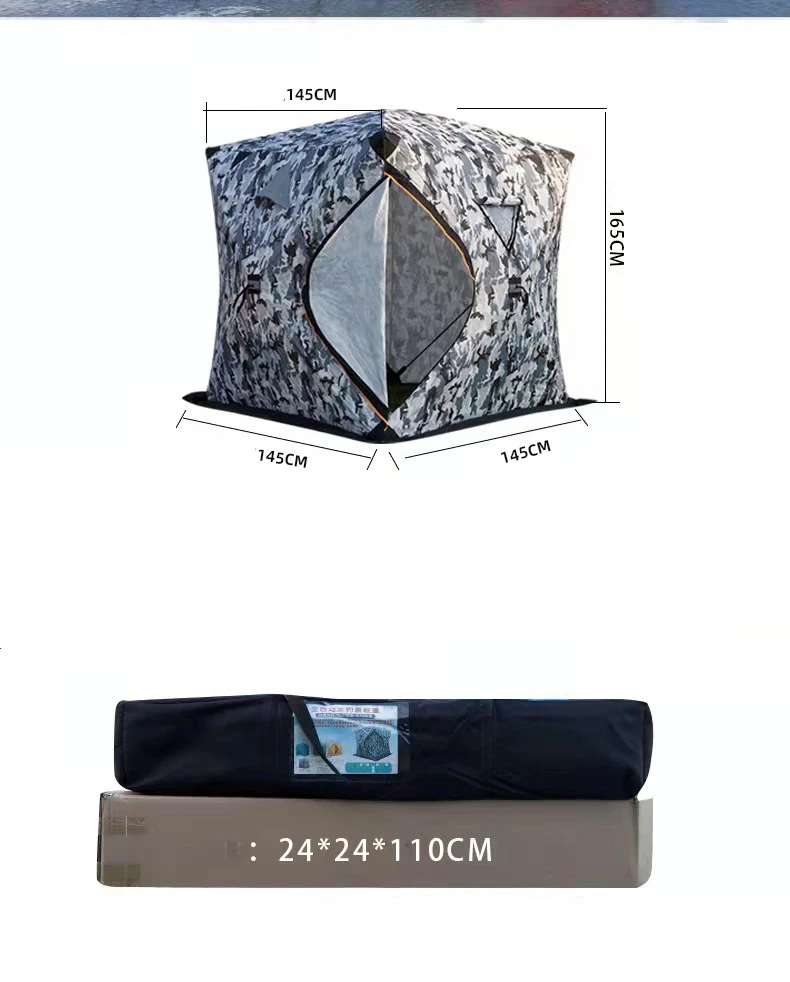 "Experience the ultimate ice fishing experience with our 2-3 Person Ice Fishing Tent. Featuring a spacious design, this tent offers comfort and protection from the harsh elements. Don't let the cold weather stop you from enjoying your favorite outdoor activity. Get yours today and elevate your ice fishing game."
