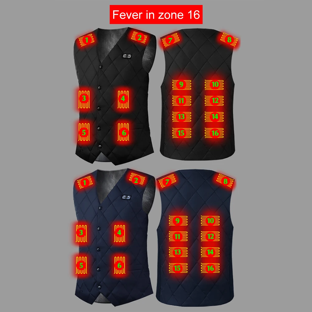 16 Places Zones Heated Vest 3 Gears Heated Vest Coat USB Charging Thermal Electric Heating Clothing Women Men for Camping Hiking